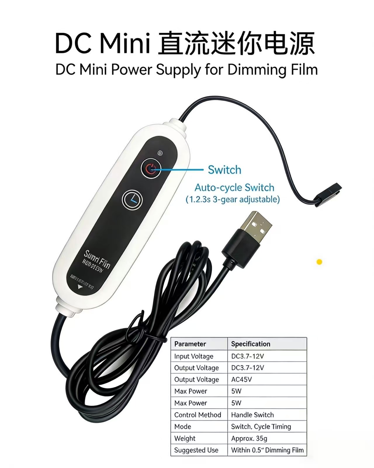 USB Mini Power 5W for smart film/glass