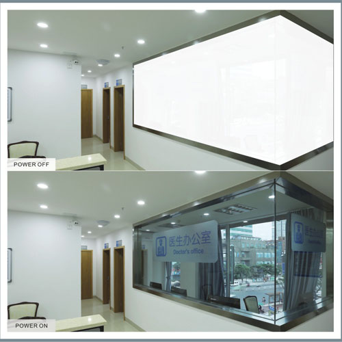 Selfadhesive smart film was made from the smart film with one layer of AB glue, which can paste onto the surface of exsiting glass. It is transparent when it is on while it is opaque when it is off. This film is better solution to install ordinary glass or the project of the ordinary glass which needs to be projected because it can be sealed on the glass surface directly without removing the glass. Now it is the most populars material for hotel,office,villa....